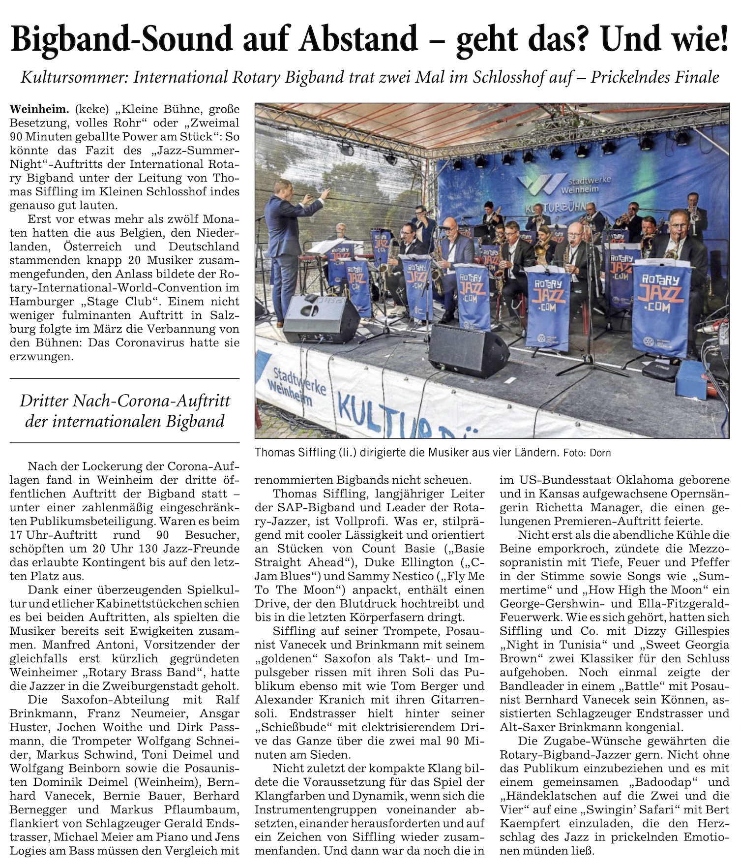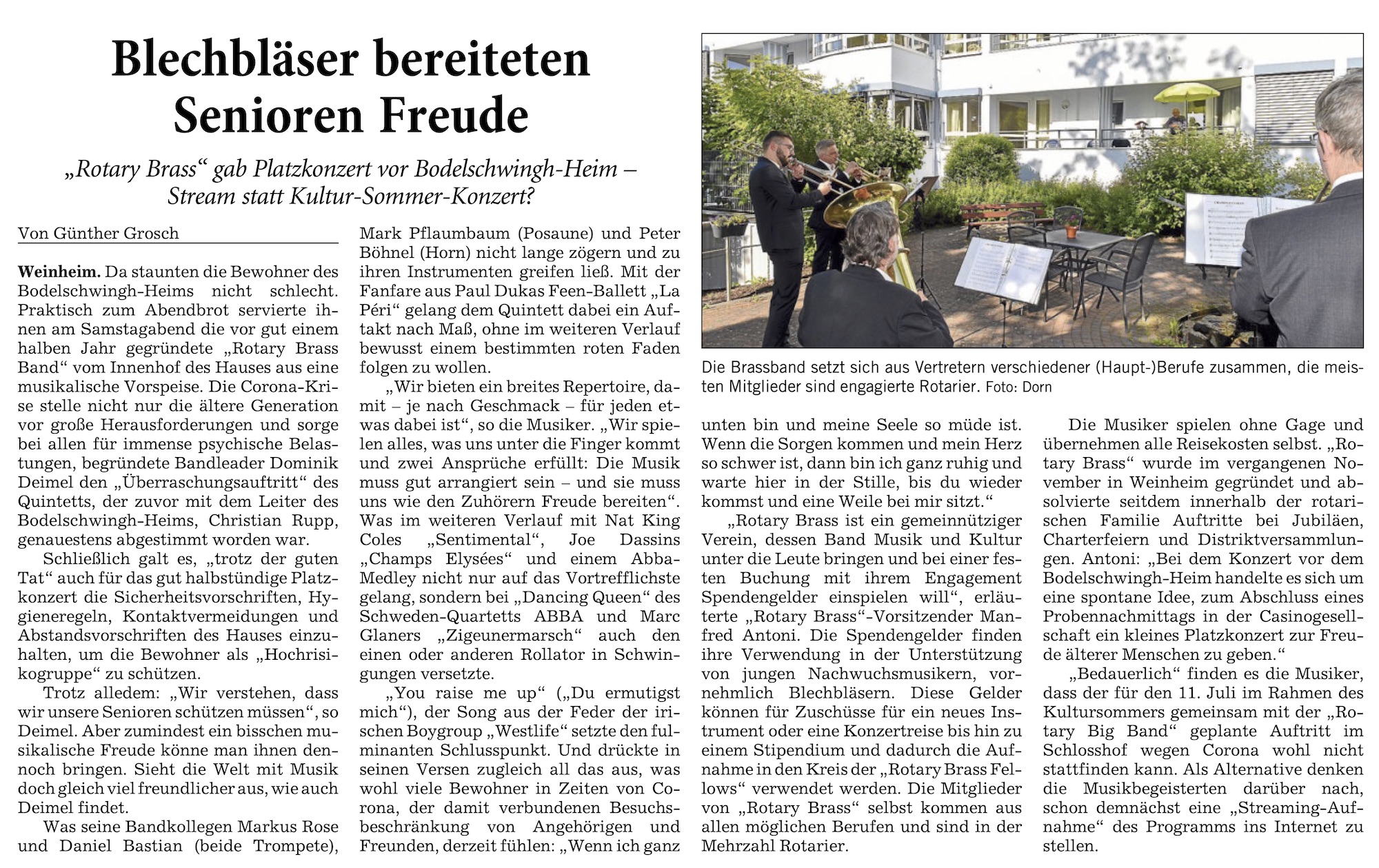 Wir danken an dieser Stelle Günther Grosch vom Rotary Club Weinheim, da er immer wieder erstklassige Artikel in den Weinheimer Nachrichten und der Rhein-Neckar-Zeitung veröffentlicht. Danke, lieber Günther, dass Du so auch den Pressespiegel von Rotary Brass bereicherst!